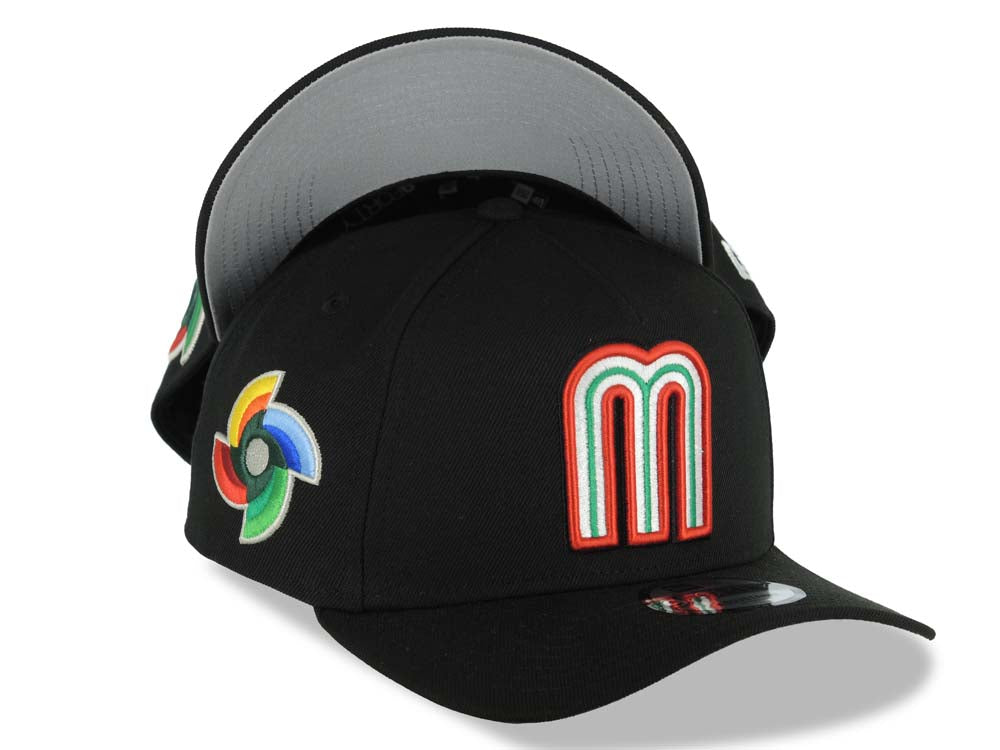 Mexico New Era WBC World Baseball Classic 9FORTY 940 Adjustable A-Frame Cap Hat Black Crown/Visor Red/White/Green Logo Gray UV