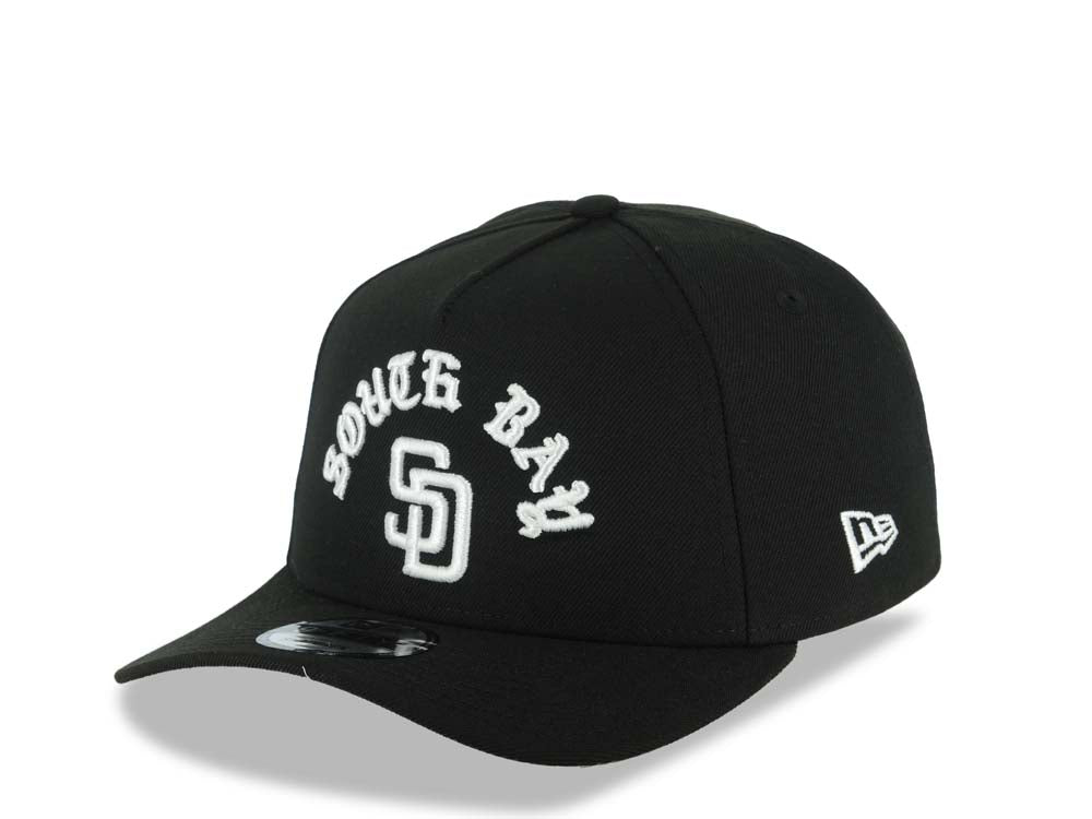 San Diego Padres New Era MLB 9FORTY 940 Adjustable A-Frame Cap Hat Black Crown/Visor White Logo With South Bay Text/Script 40th Anniversary Side Patch Gray UV