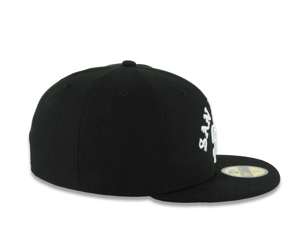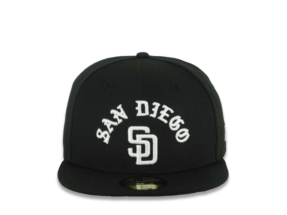 San Diego Padres New Era MLB 59FIFTY 5950 Fitted Cap Hat Black Crown/Visor White Script/Text Logo Gray UV