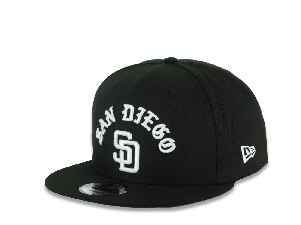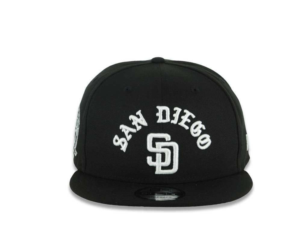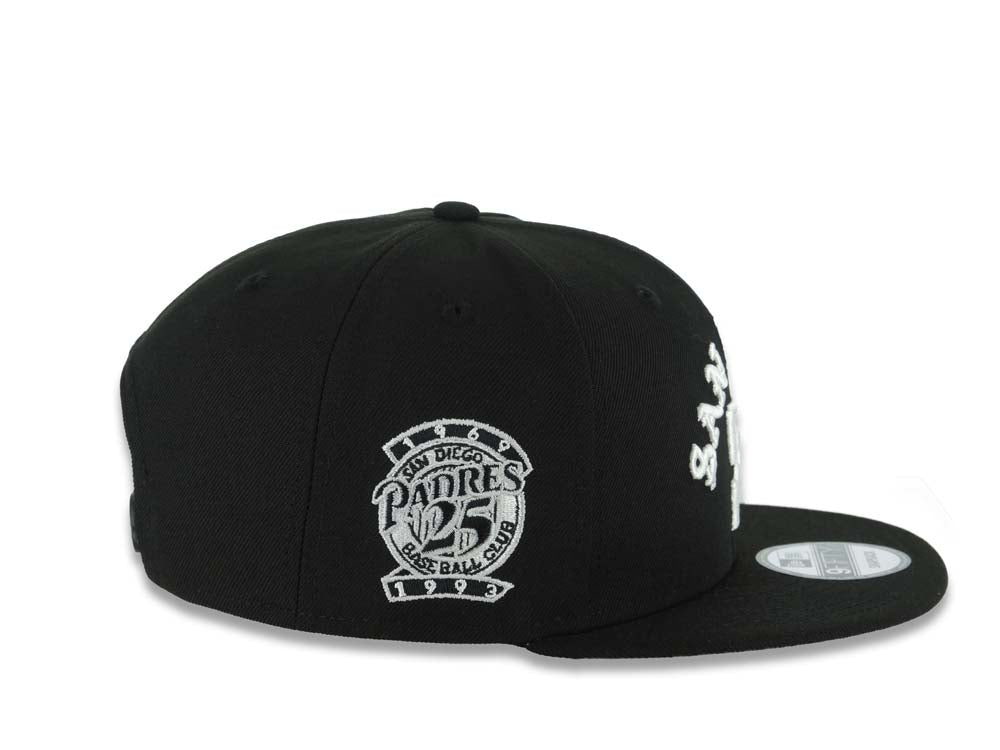 San Diego Padres New Era MLB 9FIFTY 950 Snapback Cap Hat Black Crown/Visor White Logo 25th Anniversary Side Patch Gray UV