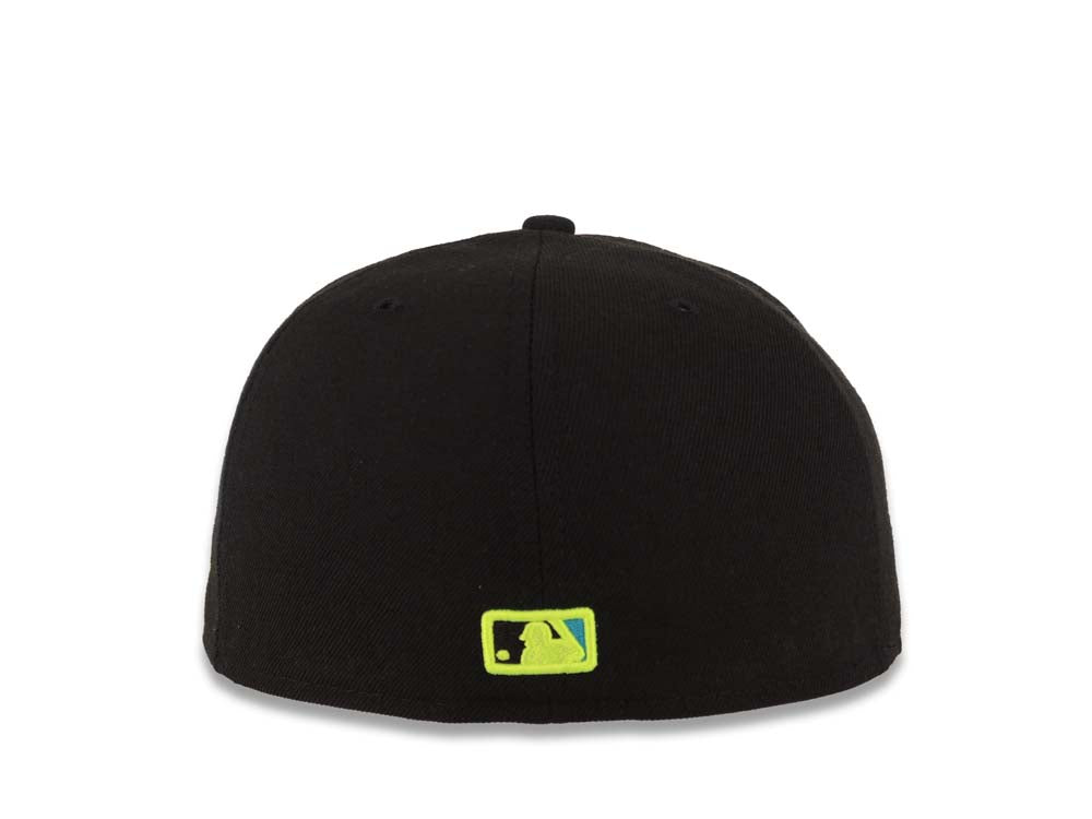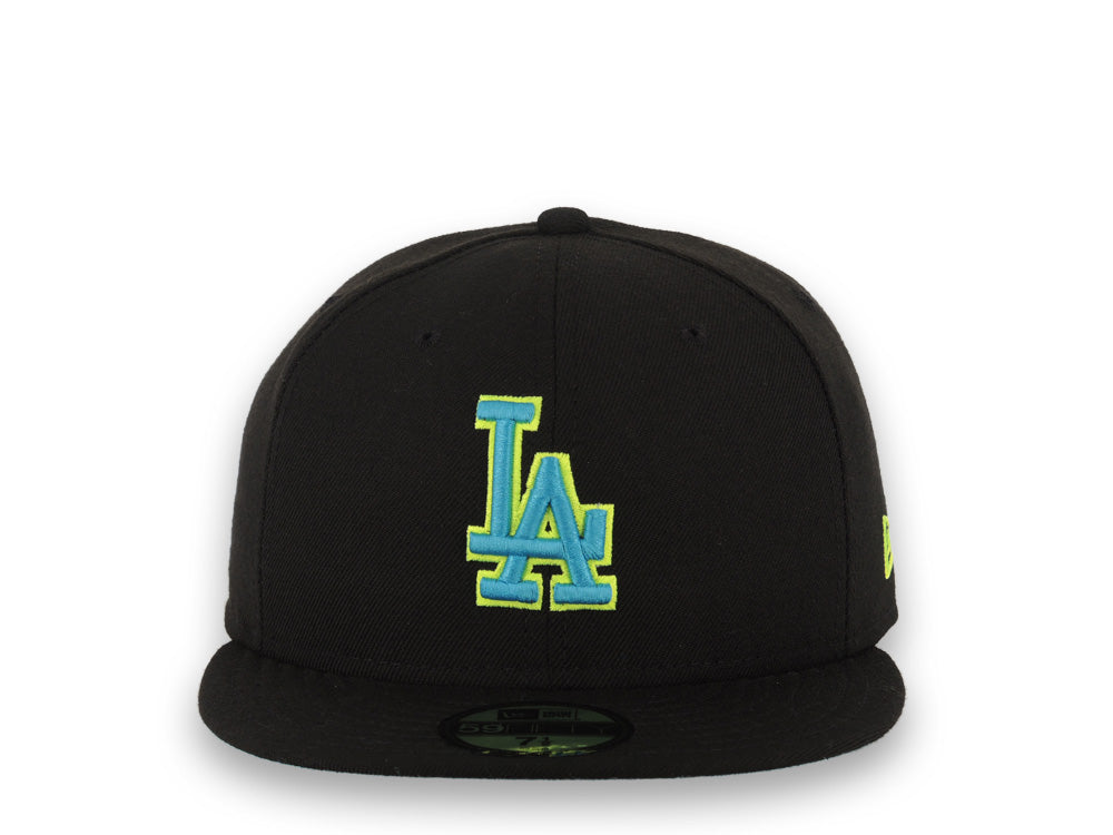 Los Angeles Dodgers New Era MLB 59FIFTY 5950 Fitted Cap Hat Black Crown/Visor Aqua/Neon Yellow Logo Aqua UV