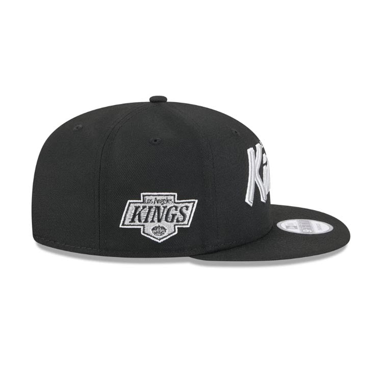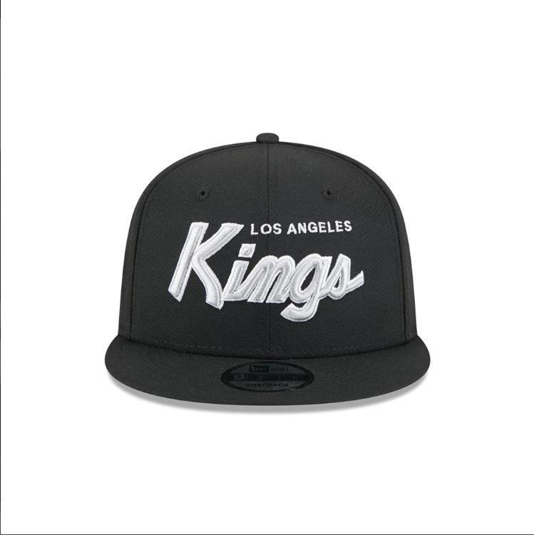 Los Angeles Kings New Era NHL 9FIFTY 950 Snapback Cap Hat Black Crown/Visor Silver/White Script/Text Logo