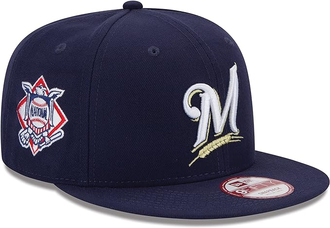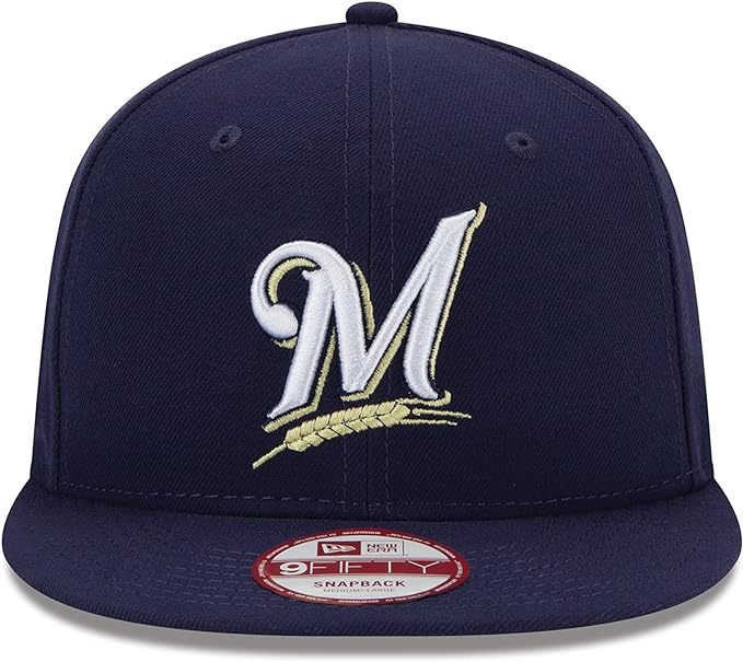 Milwaukee Brewers New Era MLB 9FIFTY 950 Baycik Snapback Cap Hat Navy Blue Crown/Visor White/Gold Logo