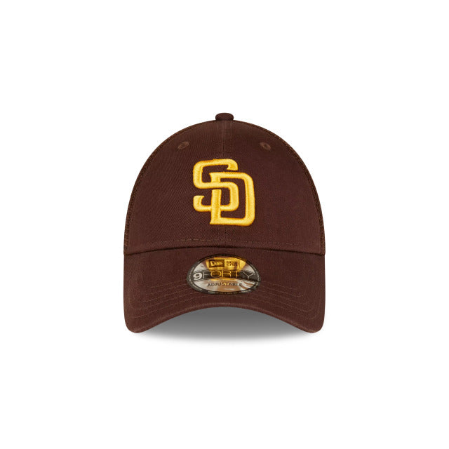 San Diego Padres New Era MLB 9FORTY 940 Adjustable Trucker Mesh Cap Hat Dark Brown Crown/Visor Yellow Logo