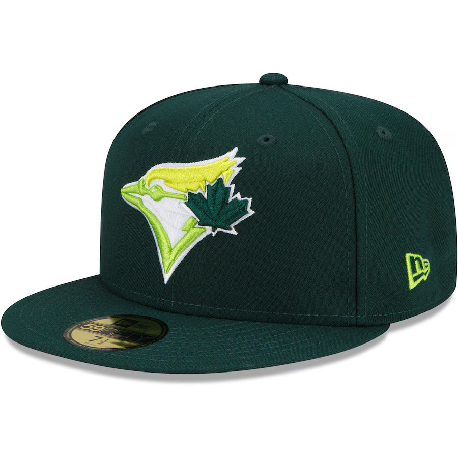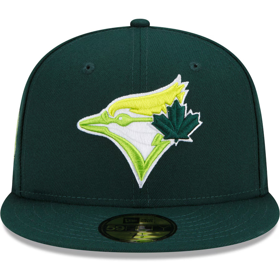 Toronto Blue Jays New Era MLB 59FIFTY 5950 Fitted Cap Hat Dark Green Crown/Visor Light Green/White Logo 40th Anniversary Side Patch