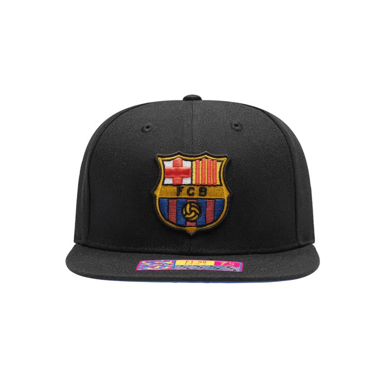 FC Football Club Barcelona (FCB) Fitted Soccer Cap Hat Black Crown/Visor Team Color Logo