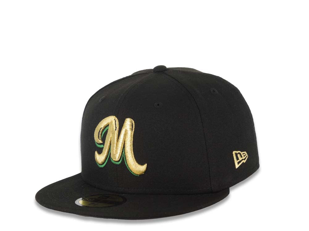Mexico Carribean Serie New Era 59FIFTY 5950 Fitted Cap Hat Black Crown/Visor Metallic Gold/Green Logo Flag Side Patch
