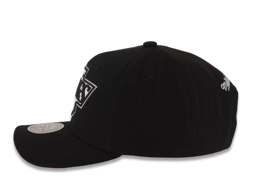 Los Angeles Kings Mitchell & Ness NHL Adjustable Panda Pro Cap Hat Black Crown/Visor Black/White Logo 50th Anniversary Side Patch