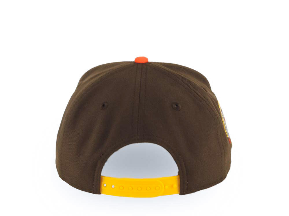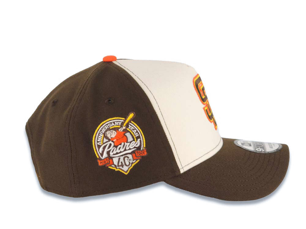 San Diego Padres New Era MLB 9FORTY 940 Adjustable A-Frame Cap Hat Cream/Brown Crown Brown Visor Brown/Yellow/Orange Logo 40th Anniversary Side Patch