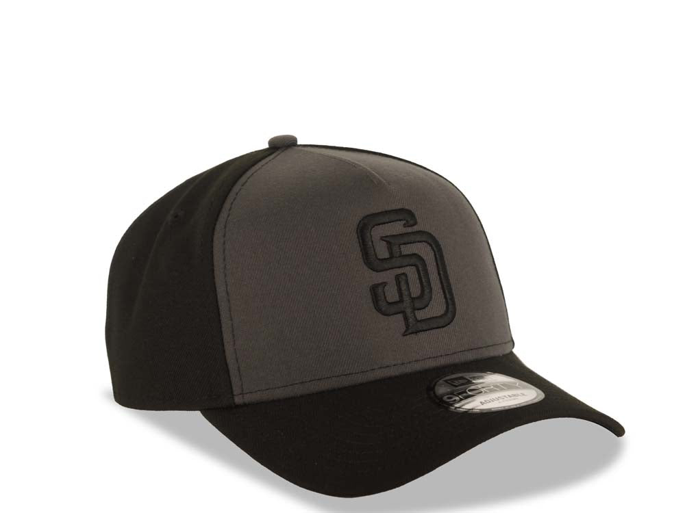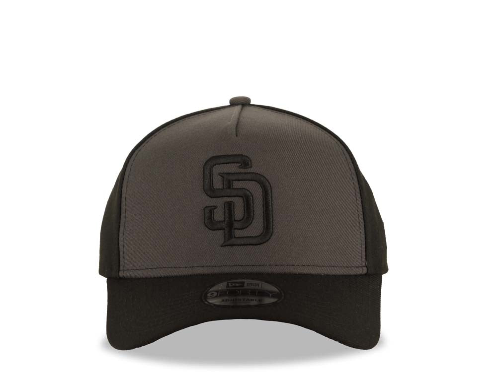 San Diego Padres New Era MLB 9FORTY 940 Adjustable A-Frame Cap Hat Dark Gray/Black Crown Black Visor Black Logo