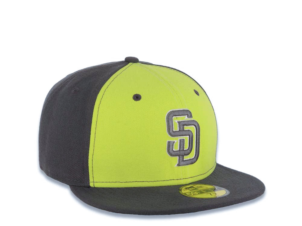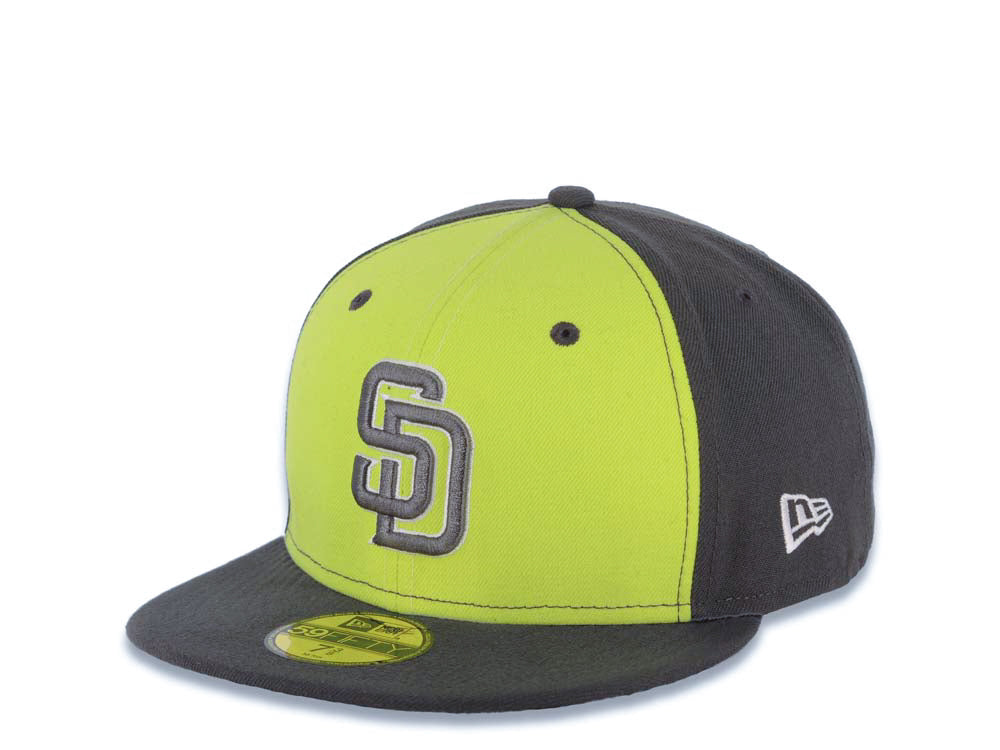 San Diego Padres New Era MLB 59FIFTY 5950 Fitted Cap Hat Bright Green/Dark Gray Crown Dark Gray Visor Team Color Logo