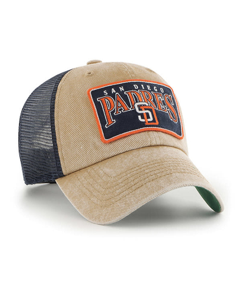 San Diego Padres '47 MLB Clean Up Adjustable Snapback Mesh Trucker Cap Hat Khaki/Navy Crown Khaki Visor Cooperstown Team Color Logo