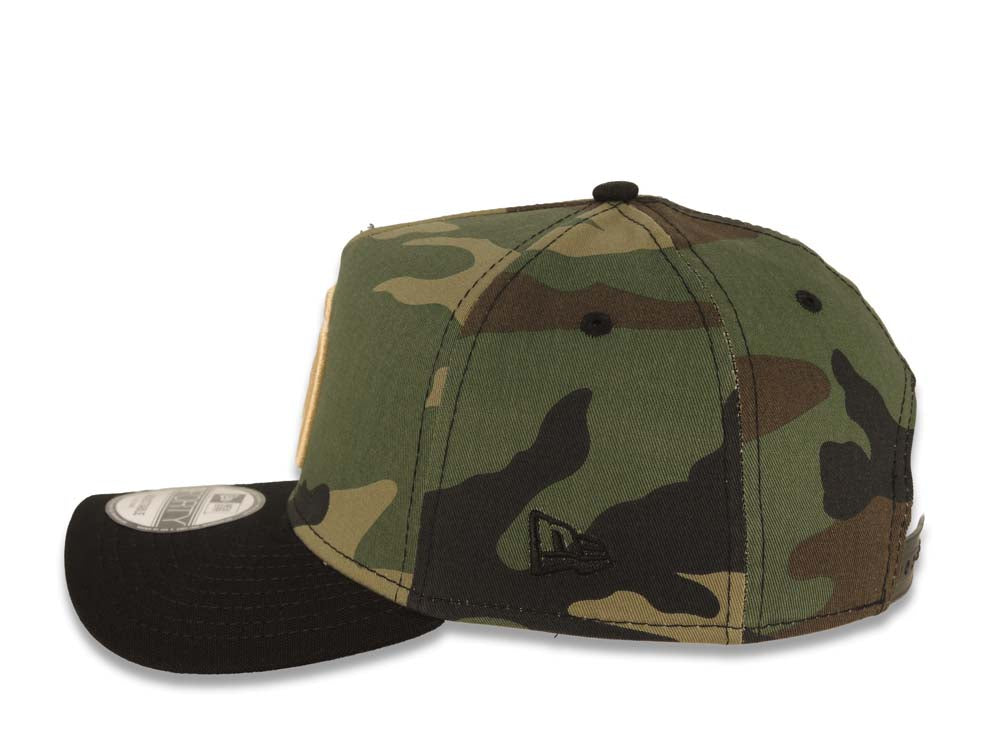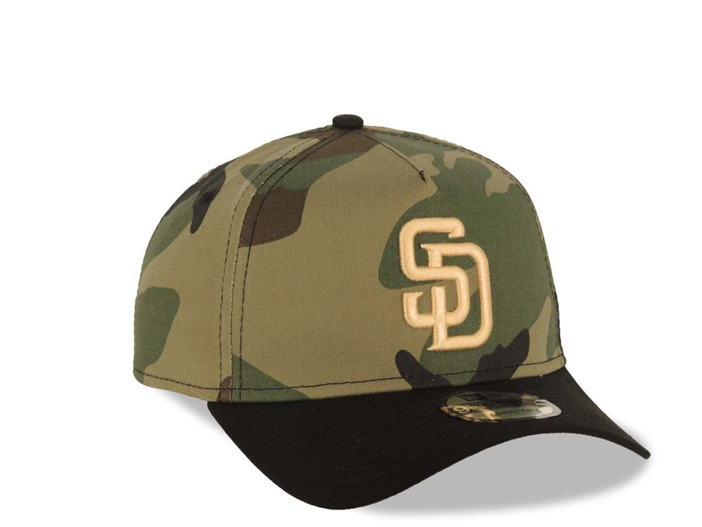 San Diego Padres New Era MLB 9FORTY 940 A-Frame Adjustable Cap Hat Camo Crown Black Visor Light Khaki Logo Gray UV