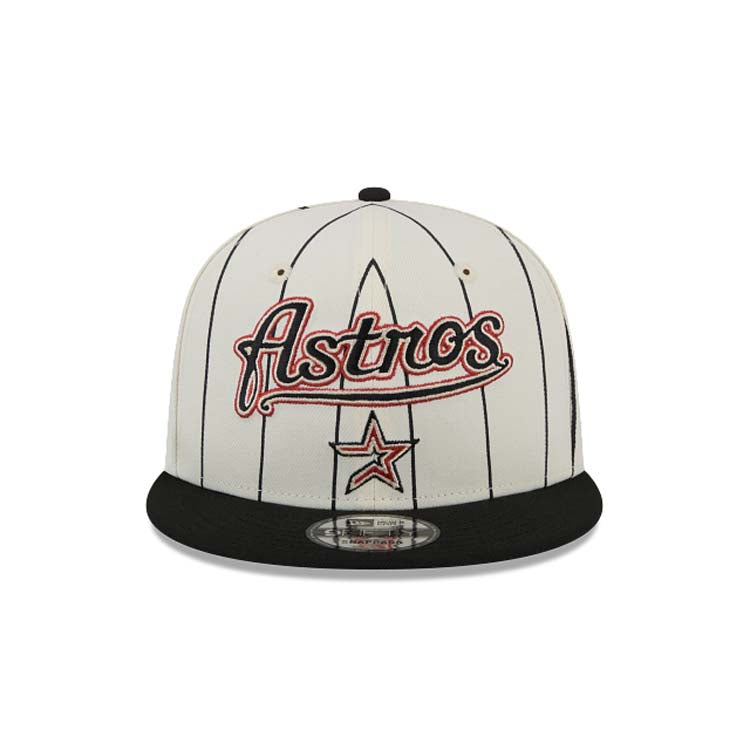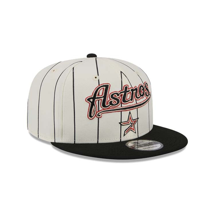Houston Astros New Era MLB 9FIFTY 950 Snapback Cap Hat Cream Pinstripe Crown Black Visor Black/Red Text/Script Logo