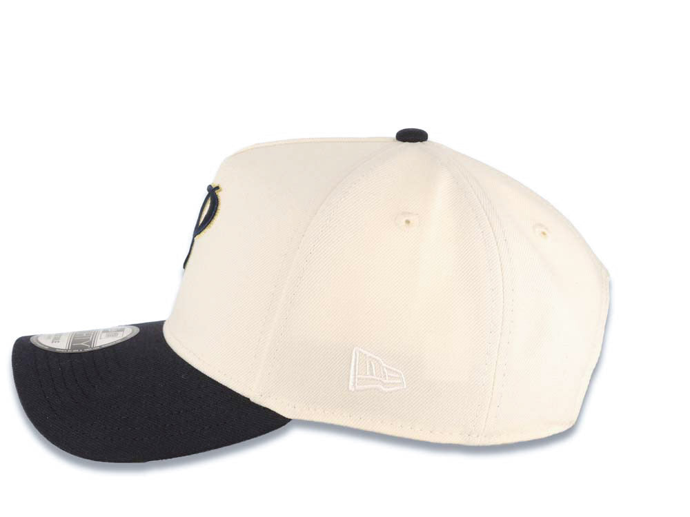 San Diego Padres New Era MLB 9FORTY 940 Adjustable A-Frame Cap Hat Cream Crown Navy Blue Visor Navy/Metallic Gold P Logo 40th Anniversary Side Patch