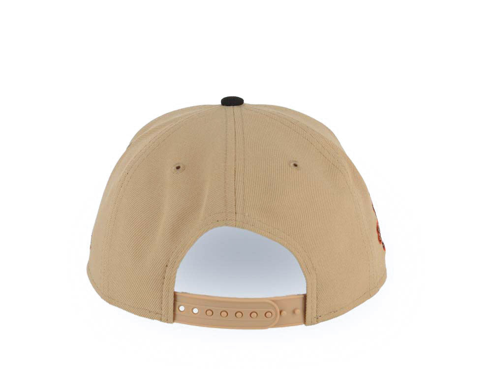 San Diego Padres New Era MLB 9FORTY 940 Adjustable A-Frame Cap Hat Khaki Crown Black Visor Peach/Metallic Brown/Black Logo 1984 World Series Patch