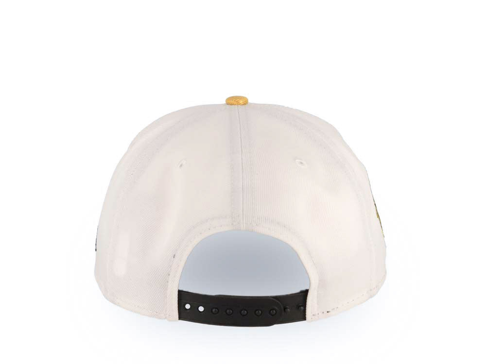 San Diego Padres New Era MLB 9FORTY 940 Adjustable A-Frame Cap Hat White Crown Black Visor Black/Metallic Gold Logo 25th Anniversary Side Patch