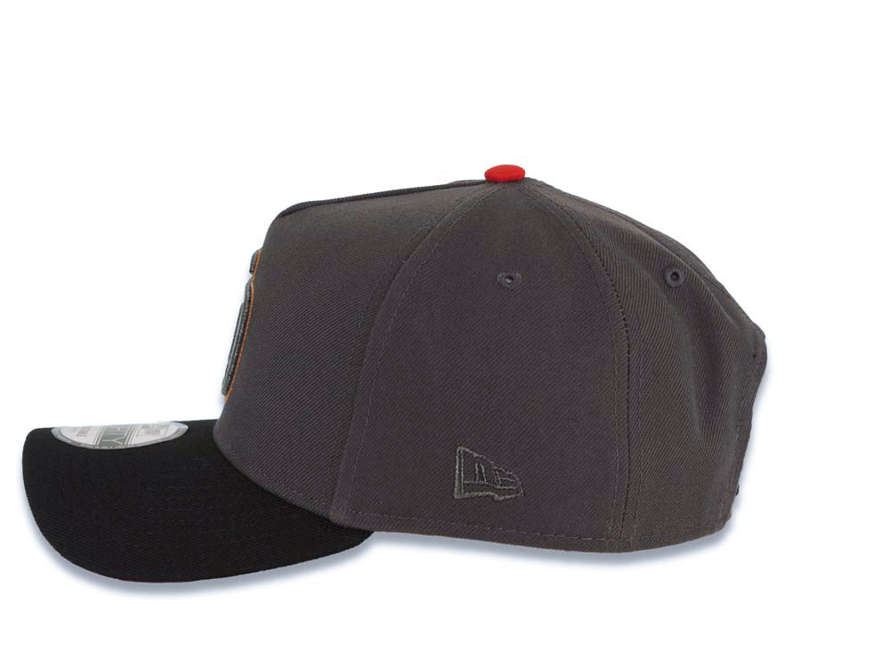 San Diego Padres New Era MLB 9FORTY 940 Adjustable A-Frame Cap Hat Dark Gray Crown Black Visor Metallic Black/Light Brown Logo Petco Park Side Patch