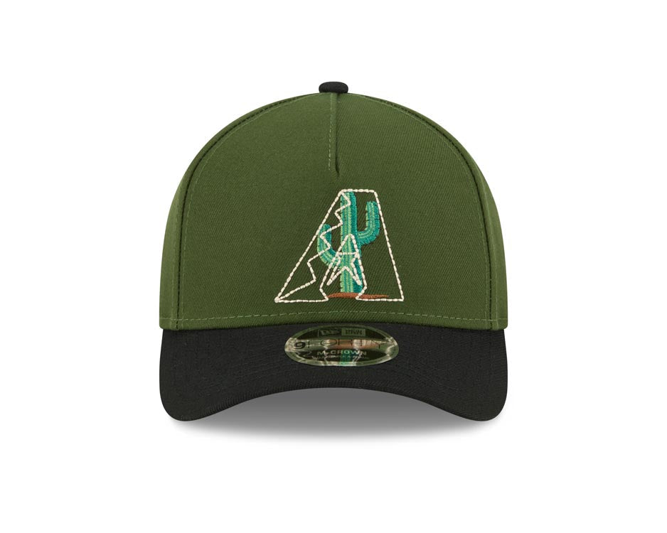 Arizona Diamondbacks New Era MLB 9FORTY 940 M-Crown Adjustable A-Frame Cap Hat Dark Green Crown Black Visor White/Green Cactus Logo
