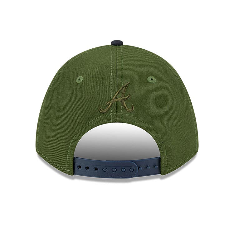 Atlanta Braves New Era MLB 9FORTY 940 M-Crown Adjustable A-Frame Cap Hat Dark Green Crown Navy Blue Visor White/Orange Peach Logo