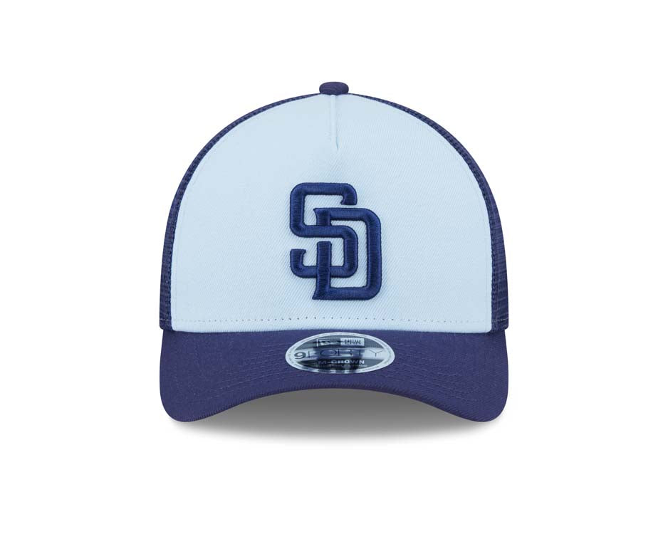 San Diego Padres New Era MLB 9FORTY 940 Adjustable A-Frame Trucker Mesh Cap Hat White/Navy Crown Navy Blue Visor Navy Blue Logo (Color Pack)