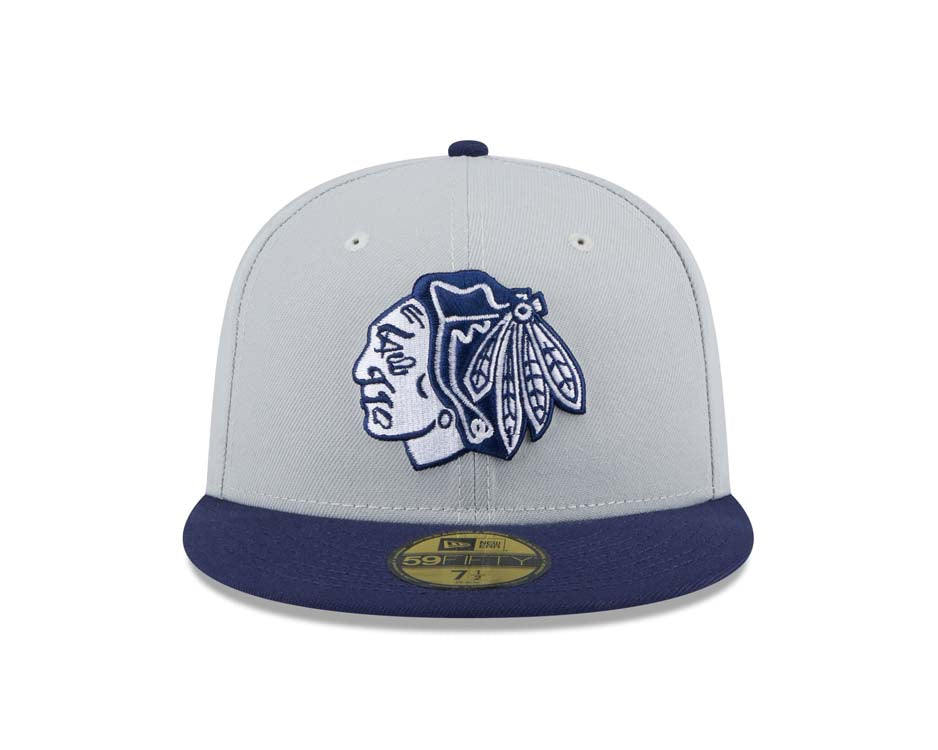 Chicago Blackhawks New Era NHL 59FIFTY 5950 Fitted Cap Hat Gray Crown Navy Blue Visor Navy Blue/Gray Logo (2-Tone Color Pack)