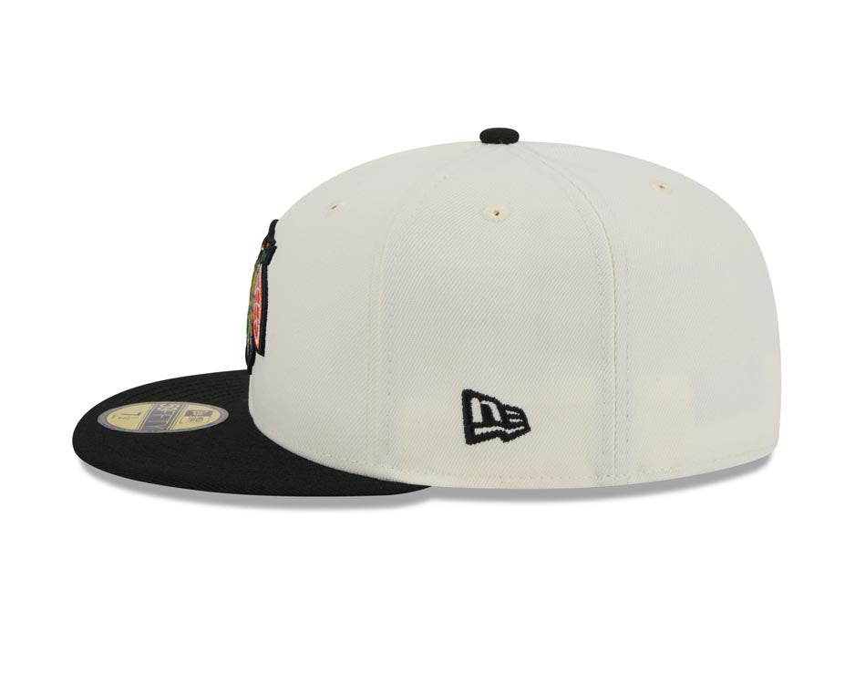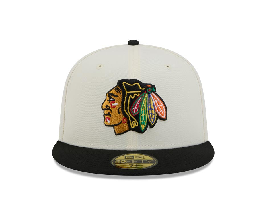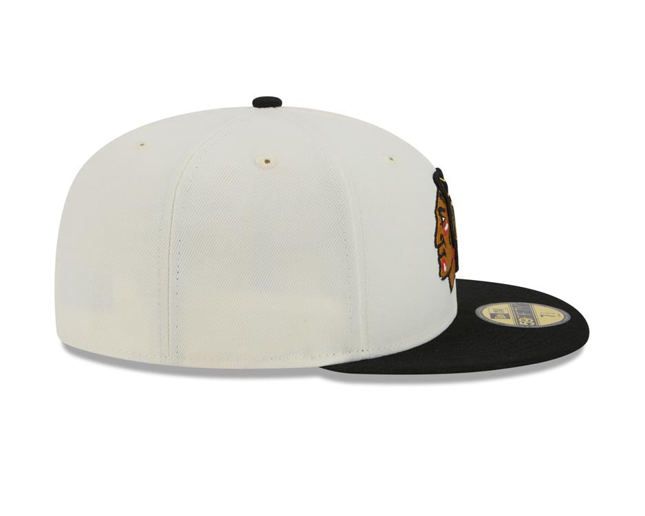 Chicago Blackhawks New Era NHL 59FIFTY 5950 Fitted Cap Hat Cream Crown Black Visor Team Color Logo