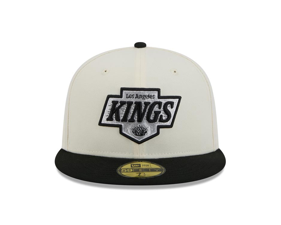 Los Angeles Kings New Era NHL 59FIFTY 5950 Fitted Cap Hat Cream Crown Black Visor Team Color Logo