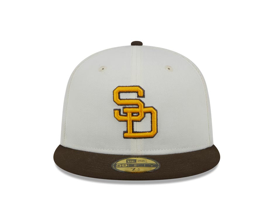 San Diego Padres New Era MLB 59FIFTY 5950 Fitted Cap Hat Cream Crown Brown Visor Yellow/Brown Cooperstown Logo
