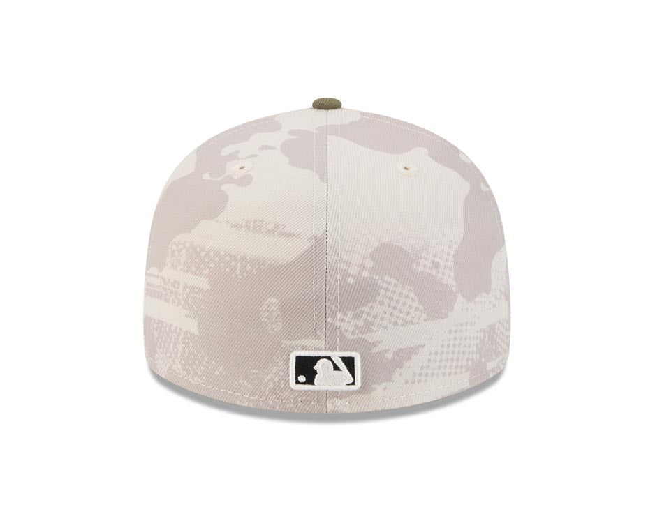 San Diego Padres New Era MLB 59FIFTY 5950 Fitted Cap Hat White Camo Crown Olive Green Visor Black/White Logo (2025 Armed Forces Day)