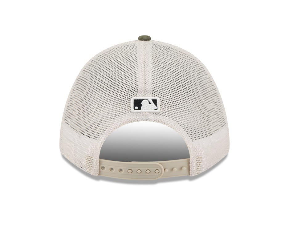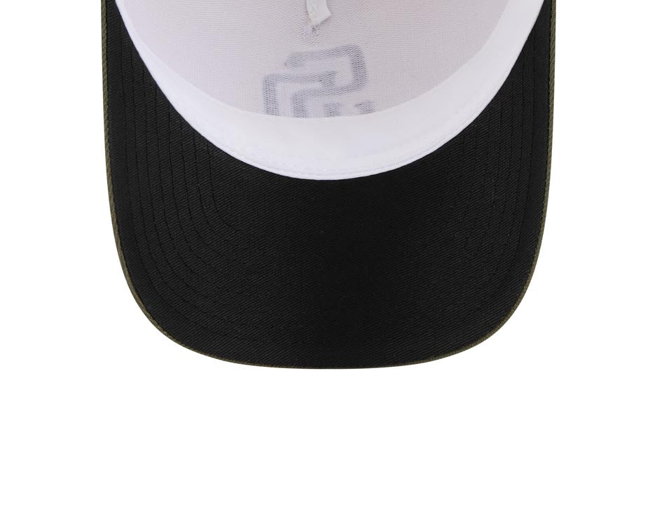 San Diego Padres New Era MLB 9FORTY 940 Adjustable M-Crown Mesh Cap Hat White Camo Crown Olive Green Visor Black/White Logo (2025 Armed Forces Day)