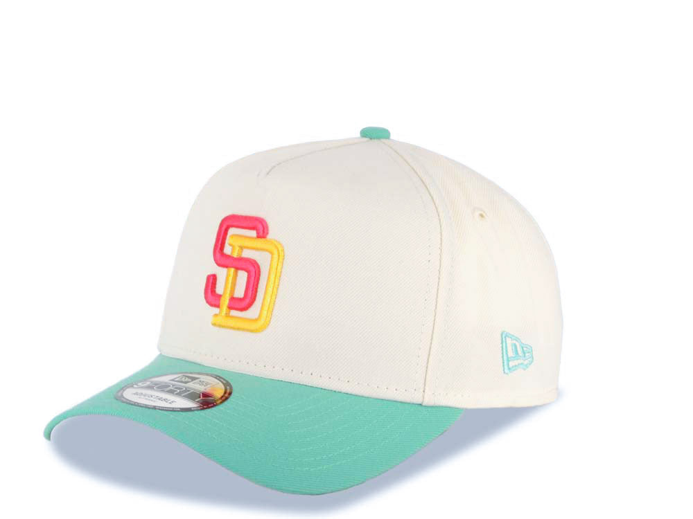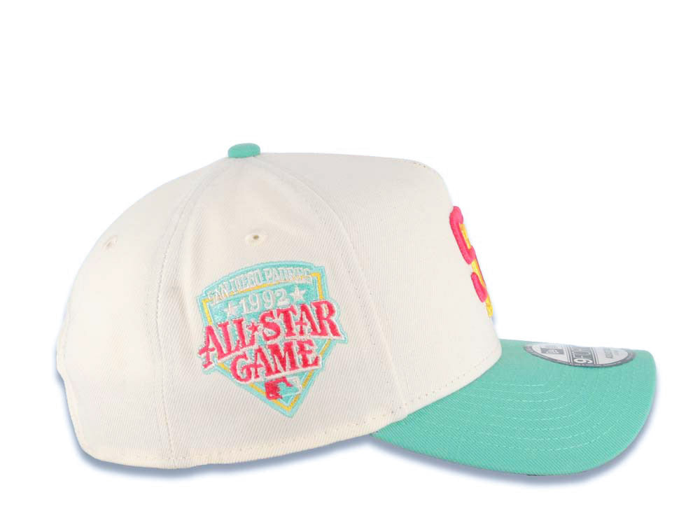 San Diego Padres New Era MLB 9FORTY 940 Adjustable A-Frame Cap Hat Cream Crown Light Teal Visor Magenta/Yellow Logo 1992 All-Star Game Side Patch