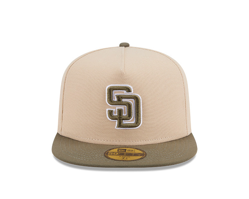 San Diego Padres New Era MLB 59FIFTY 5950 Fitted A-Frame Cap Hat Light Khaki Crown Olive Green Visor Green/White Logo (2-Tone Color Pack)