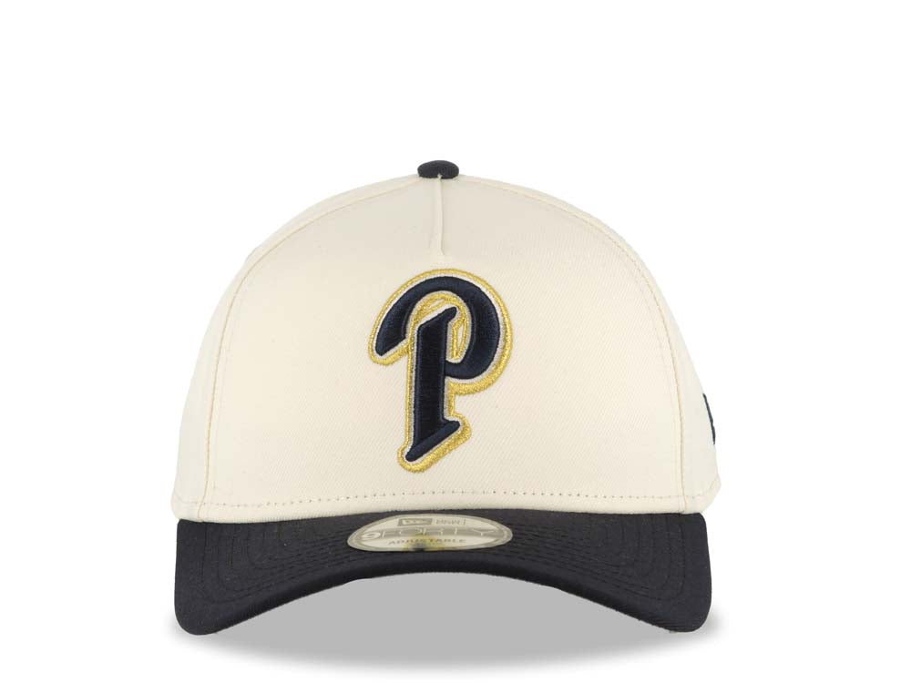 San Diego Padres New Era MLB 9FORTY 940 Adjustable A-Frame Cap Hat Cream Crown Navy Blue Visor Navy Blue/Metallic Gold Logo Gray UV