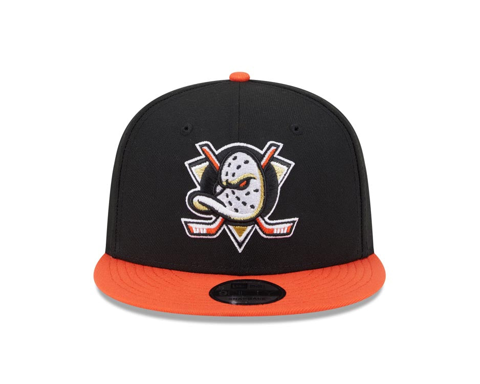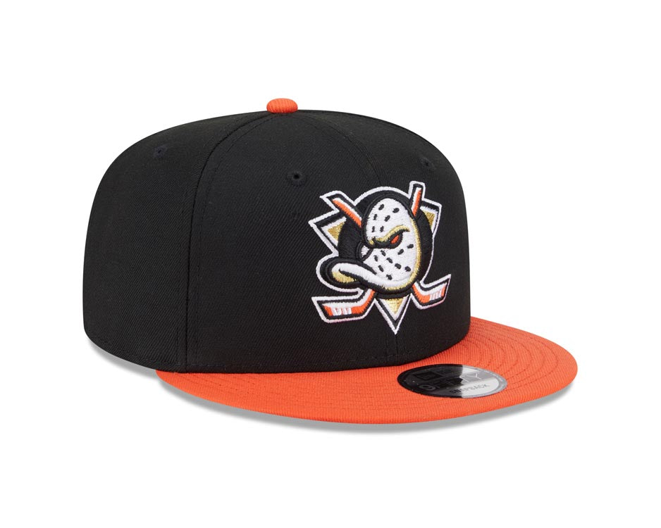 Mighty Ducks New Era NHL 9FIFTY 950 Snapback Cap Hat Black Crown Orange Visor Team Color Logo