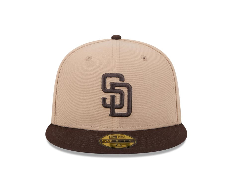 San Diego Padres New Era MLB 59FIFTY 5950 Fitted Cap Hat Khaki Crown Brown Visor Brown Logo