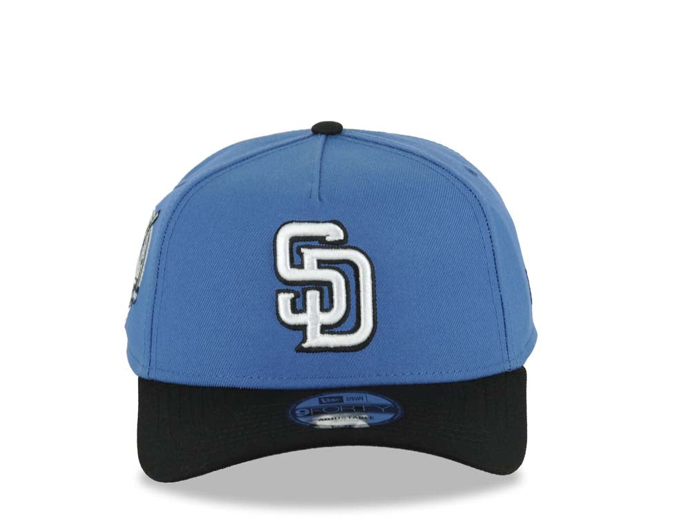 San Diego Padres New Era MLB 9FORTY 940 Adjustable A-Frame Cap Hat Blue Crown Black Visor White/Black Logo 40th Anniversary Side Patch