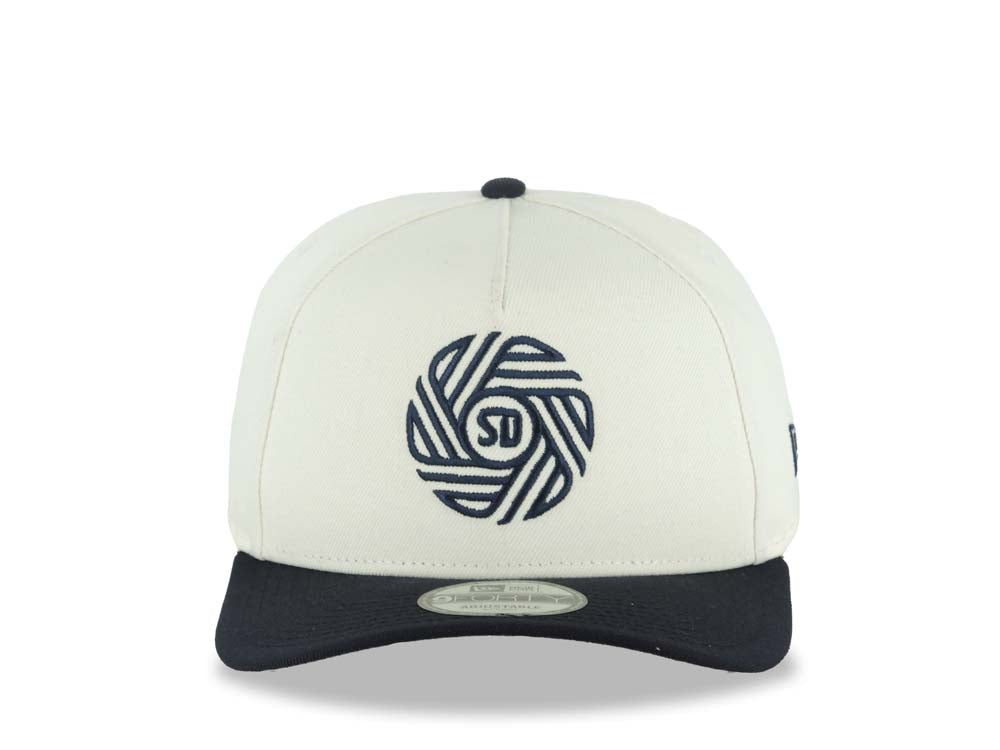 San Diego FC New Era 9FORTY 940 Adjustable A-Frame Cap Hat Cream Crown Navy Blue Visor Navy Blue Logo Gray UV
