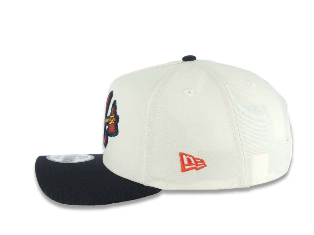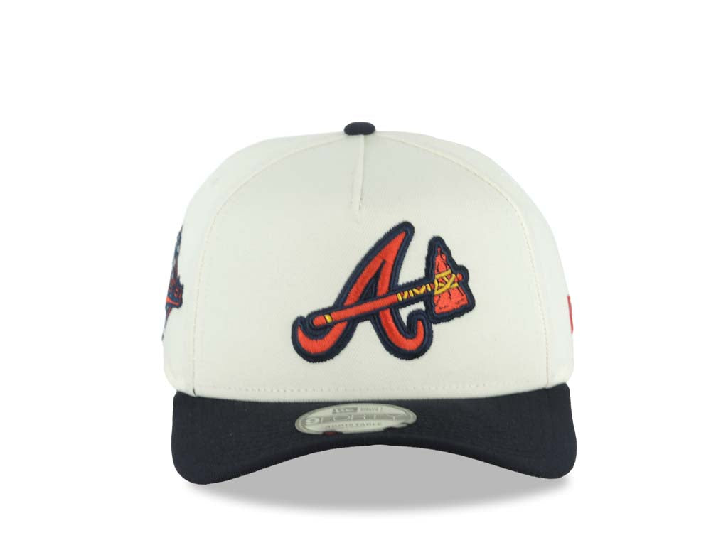 Atlanta Braves New Era MLB 9FORTY 940 Adjustable A-Frame Cap Hat Cream Crown Navy Blue Visor Team Color Axe Logo 1992 World Series Side Patch