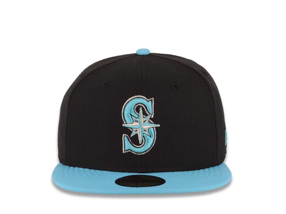 Seattle Mariners New Era MLB 59FIFTY 5950 Fitted Cap Hat Black Crown Blue Visor Blue/White Logo