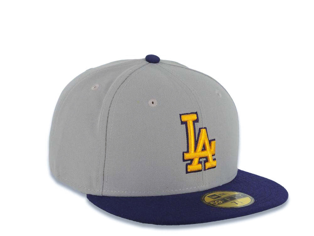 Los Angeles Dodgers New Era MLB 59FIFTY 5950 Fitted Cap Hat Gray Crown Purple Visor Yellow/Purple Logo