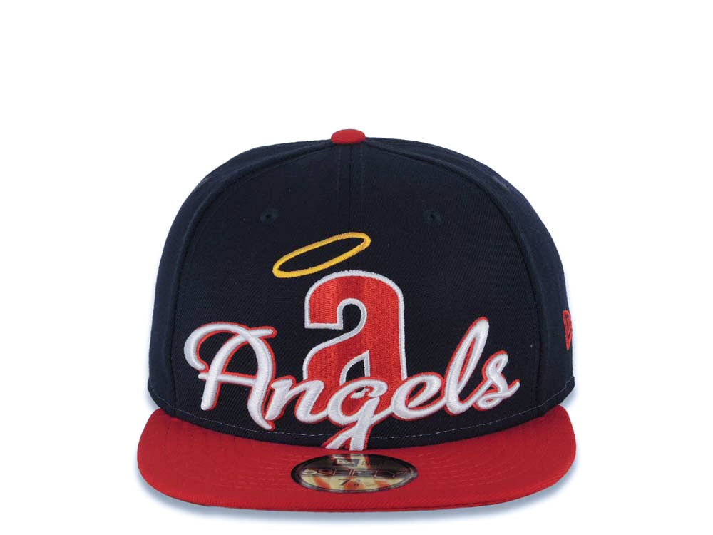 California Anaheim Angels New Era MLB 59FIFTY 5950 Fitted Cooperstown Cap Hat Navy Blue Crown Red Visor Team Color Script Punch Logo