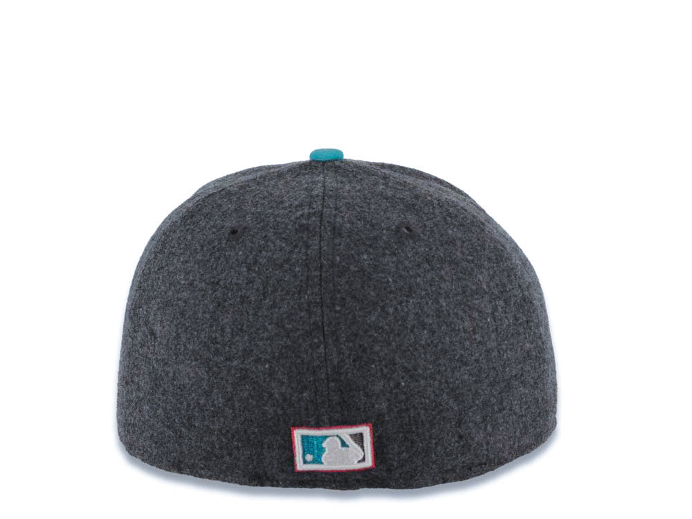 Los Angeles Anaheim Angels New Era MLB 59FIFTY 5950 Fitted Melton Cap Hat Dark Gray Crown Black Visor Teal/White/Magenta Logo Pink UV