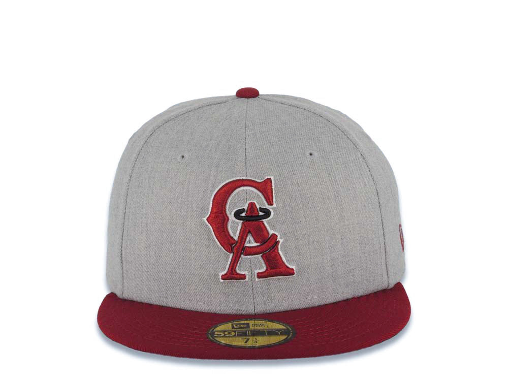 California Angels New Era MLB 59FIFTY 5950 Fitted Cap Hat Heather Gray Crown Cardinal Visor Cardinal/White/Black CA Logo