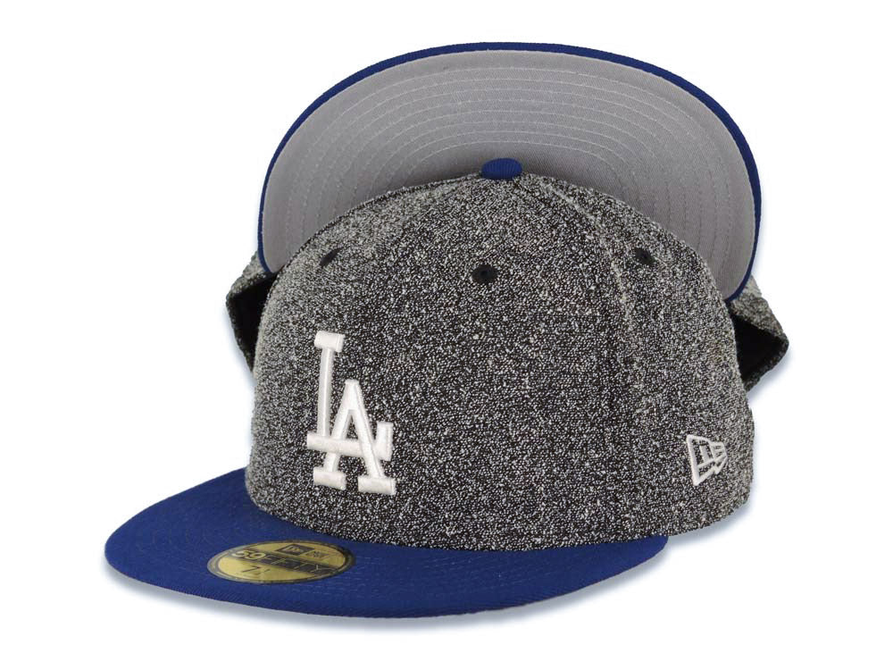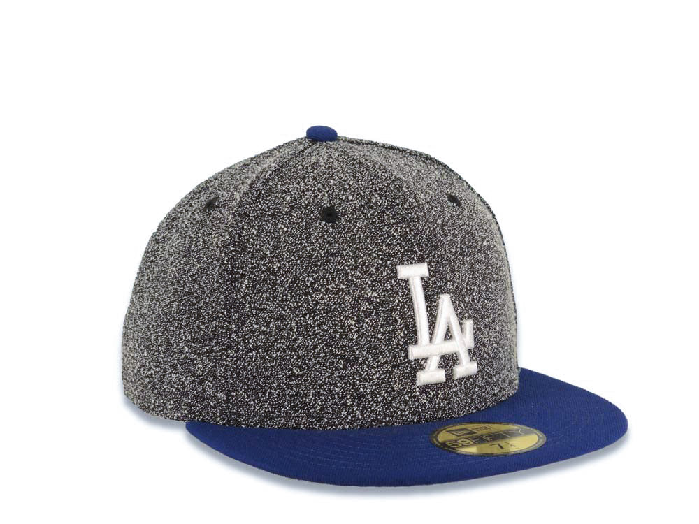 Los Angeles Dodgers New Era MLB 59FIFTY 5950 Fitted Cap Hat Black/Gray Spec Crown Royal Blue Visor White Logo