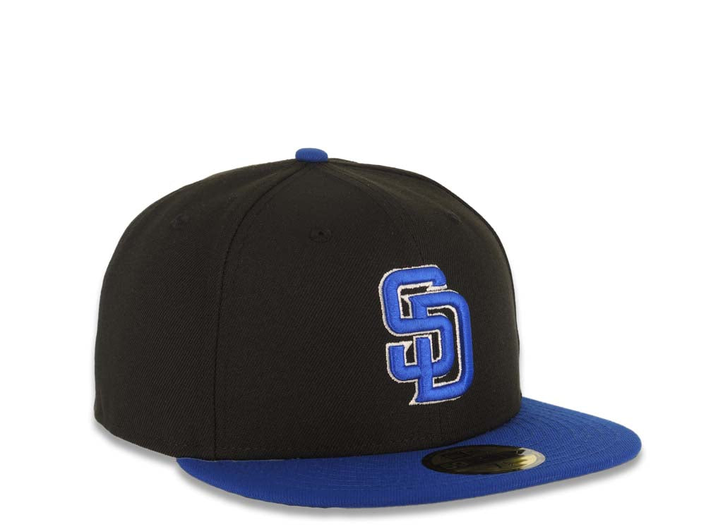 San Diego Padres New Era MLB 59FIFTY 5950 Fitted Cap Hat Black Crown Royal Blue Visor Royal Blue/White Logo