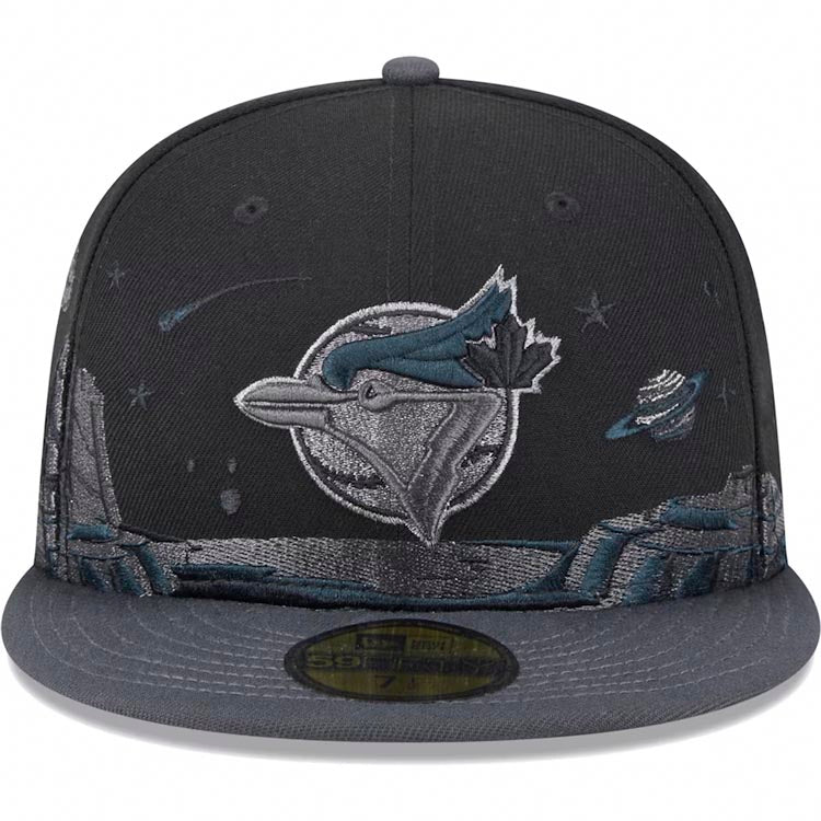 Toronto Blue Jays New Era MLB 59FIFTY 5950 Fitted Cap Hat Black Crown Dark Gray Visor Gray Logo (Planetary)