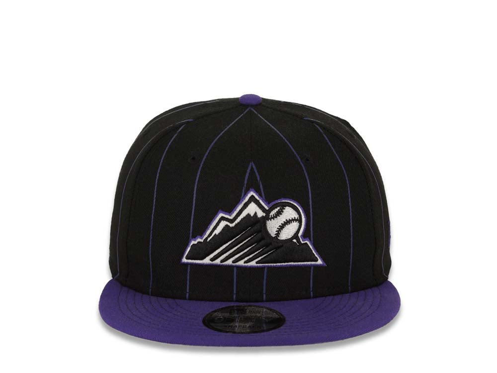 Colorado Rockies New Era MLB 9FIFTY 950 Snapback Cap Hat Black/Purple Pinstripe Crown Purple Visor Team Color Logo