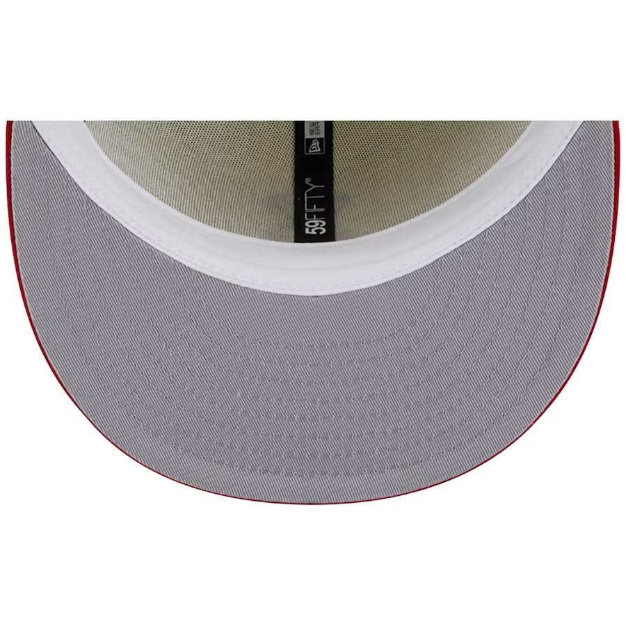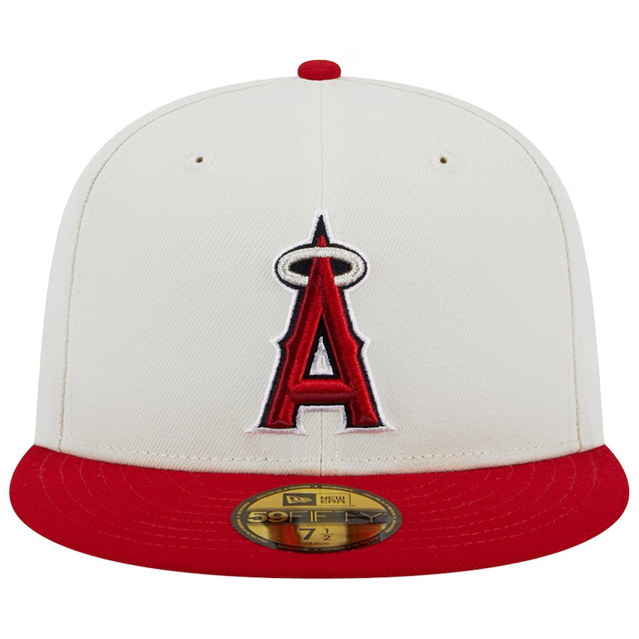 Los Angeles Anaheim Angels New Era MLB 59FIFTY 5950 Fitted Cap Hat Cream Crown Red Visor Red/Black Logo 2002 World Series Side Patch
