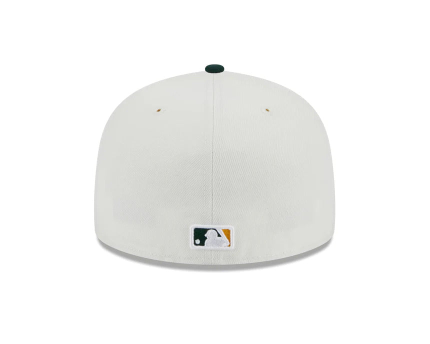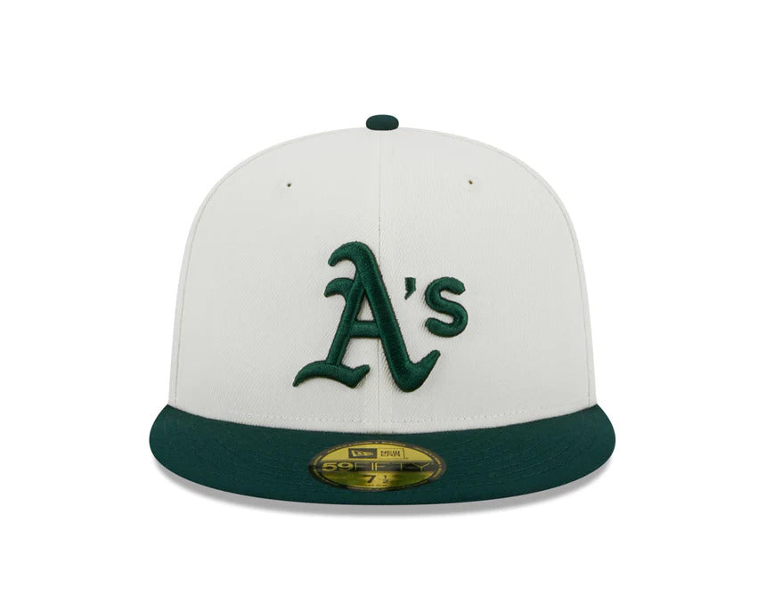 Oakland A's Athletics New Era MLB 59FIFTY 5950 Fitted Cap Hat Cream Crown Green Visor Green Logo 1989 World Series Side Patch